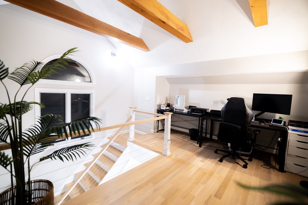 Step into this newly renovated end-unit 3-level townhouse! Enjoy an open main floor with a bright living/dining area, stylish kitchen with brand-new appliances, half bath, and a private deck. Second floor features two spacious cathedral-ceiling bedrooms, one primary bedroom, and in-unit washer/dryer. Lastly, a top-floor loft with beamed ceilings, perfect for an office or additional bedroom. Enjoy hardwood floors throughout, ample closet storage, and convenient parking located next to the unit. Easy access to highway with plenty of bus stops around. Pets allowed. Option for unit to be furnished.