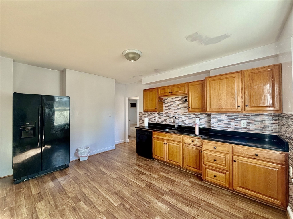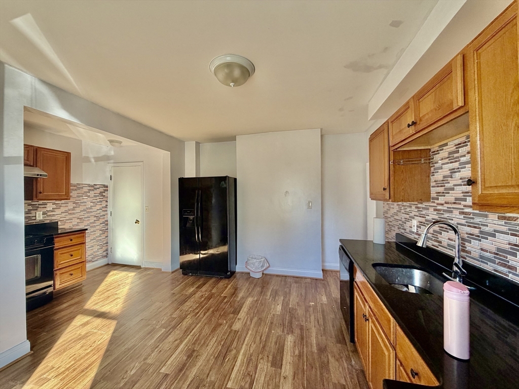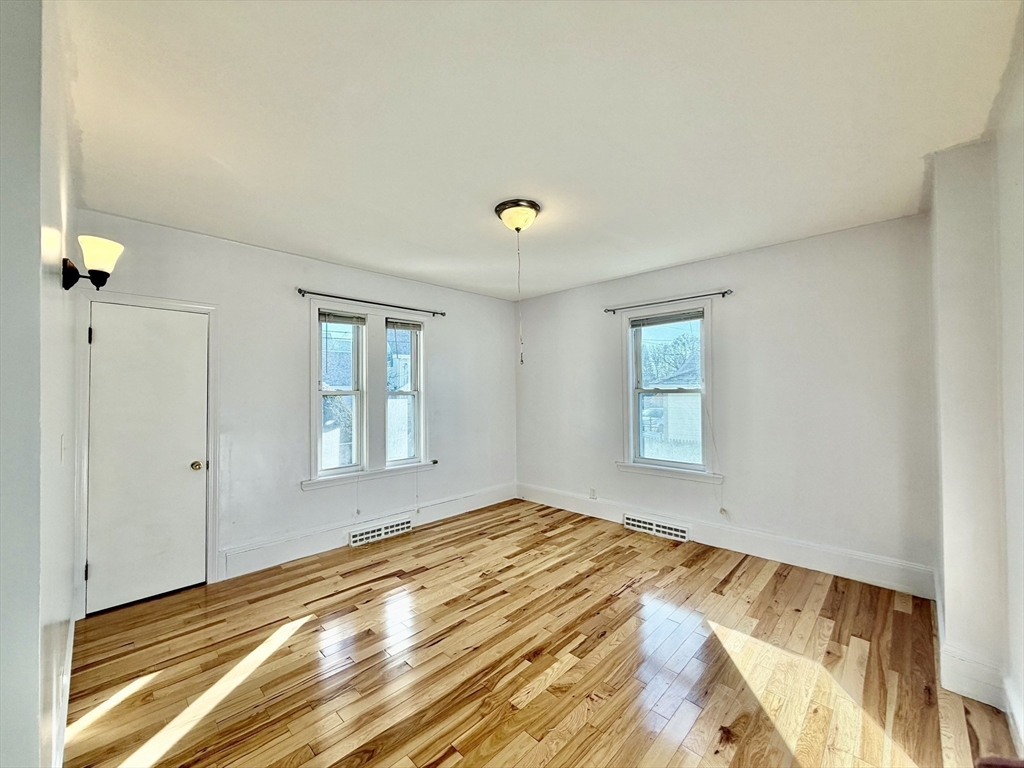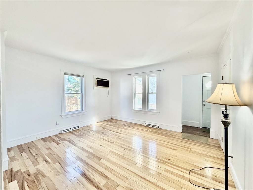 Quiet and desirable neighborhood. Minutes’ walk to the T station and one-minute drive to major highways and shopping, including BJ’s, Home Depot, and Lowe’s. Bright and spacious first-floor 2-bedroom, 1-bath apartment, fully renovated with a brand-new kitchen featuring granite countertops and hardwood floors throughout. Central heating and central air conditioning on the first floor. Maintenance-free aluminum siding. One assigned parking space on a long, wide driveway, plus additional on-street parking. Fenced-in backyard with patio, ideal for gardening or outdoor enjoyment. Laundry available in the basement. Applicants must have strong credit, verifiable income, and rental references. No pets. Non-smokers only.