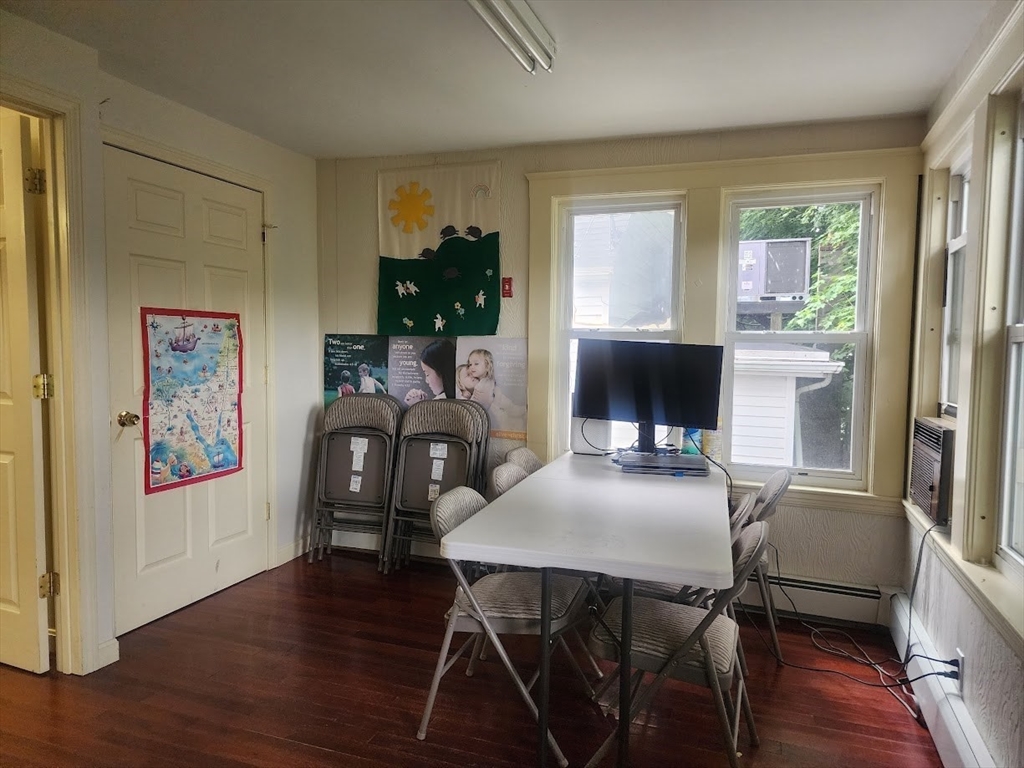Beautifully renovated and currently operated as a church with tax-exempt status, this warm and welcoming property offers flexibility with business zoning. The first floor features a spacious hall seating approx. 60, plus 2 offices, 2 bathrooms, and a kitchenette. Upstairs offers two additional rooms that can be used for classrooms, offices, or meeting space.The basement provides potential for extra usable space, making this property highly versatile. Excellent location: just a 29-min walk or 5-min bus ride to Quincy Center T, 5-min drive, and easy access to highways and shopping. Warm, inviting, and thoughtfully updated, it’s ideal for continued use as a place of worship, community center, wellness, educational or other business uses.