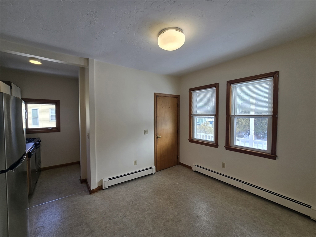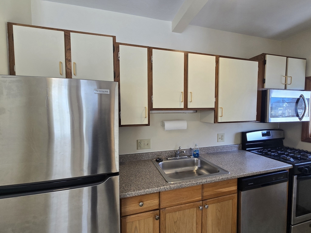 Welcome to this beautiful, bright and sunny apartment on the 2nd floor of a 3 level walk up. This well maintained and lovely home offers a great layout with a spacious eat in kitchen featuring new stainless appliances and gas cooking, good sized living room, 2 bedrooms plus office or den, full bathroom, coin op washer/dryer in the basement, private front and rear porches and use of the back yard for summer grilling, etc. The entire apartment has been remodeled recently. Included with the rent are water, sewer, trash removal, plenty of parking, snow removal and landscaping. Tenant is responsible for the gas bill for heat, hot water and cooking as well as for the electric bill for outlets & lighting. Optional cable & internet are available. Great location on a side street near, Quincy Center T Station, busine, highway, shopping, etc. Management requires very good to excellent credit, verifiable income, good references & ID for this one year lease. No pets or smoking.