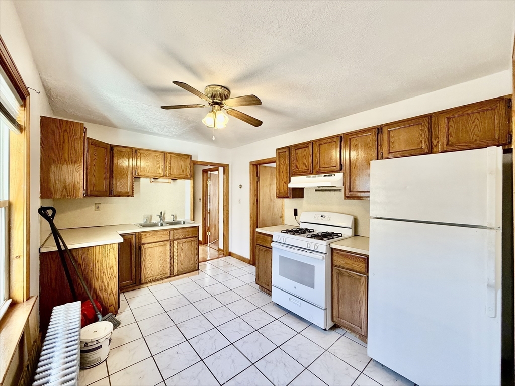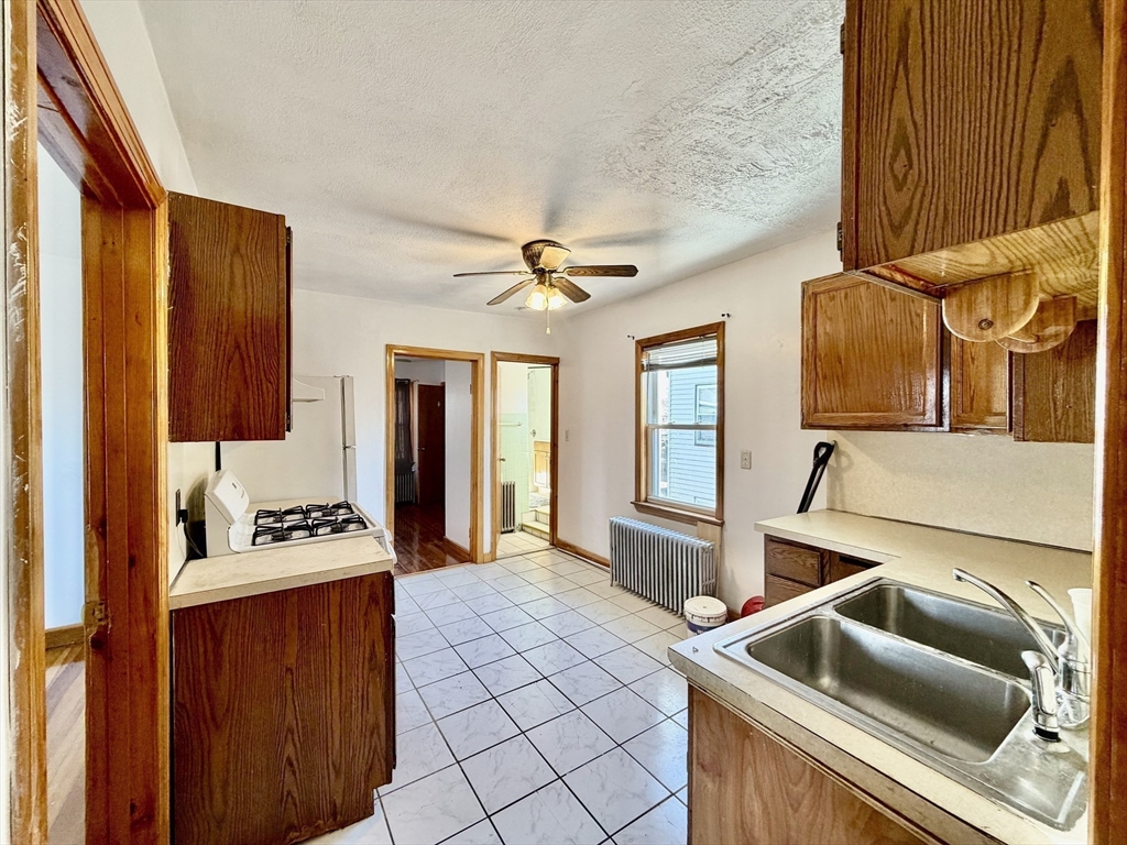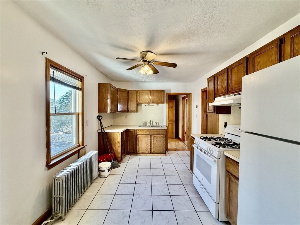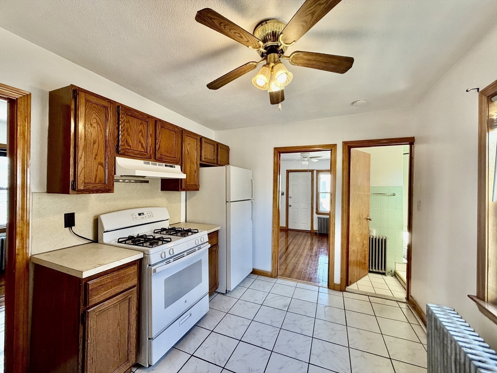 3-bedroom, 1-bath unit at 156 Main St, Quincy with about 900 sq. ft. of single-level living. Features hardwood floors in living areas and bedrooms, bright natural light, and neutral finishes. Kitchen includes wood cabinets, tiled flooring, and standard appliances. Full bath with standard fixtures. Radiator/baseboard heat and some ceiling fans. Convenient location near shopping, dining, and public transportation. No smoking. First month’s rent and security deposit required.