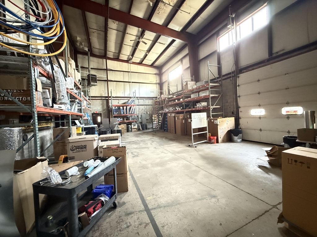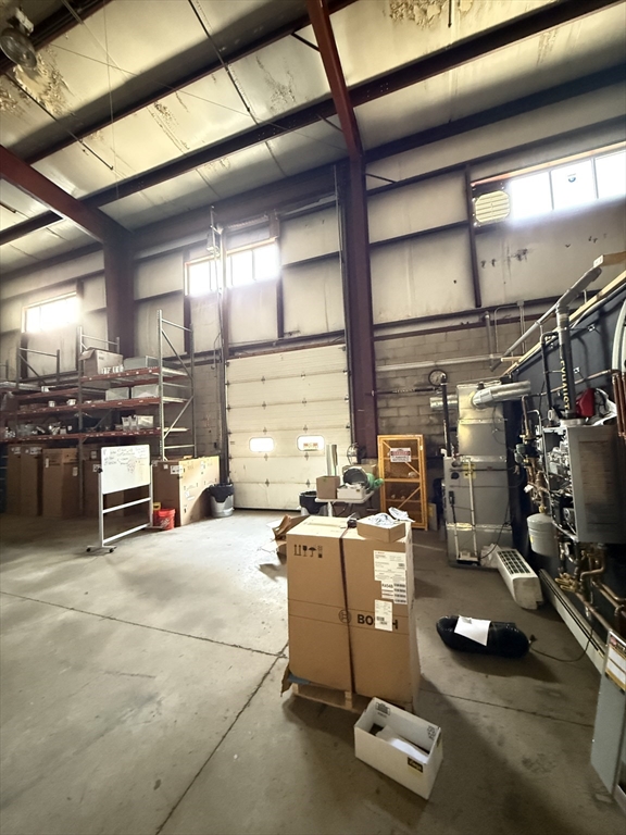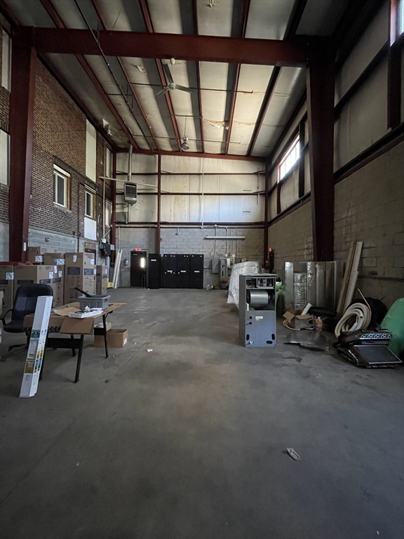 Approximately 2,100 SF heated and sprinklered warehouse space with 25+ ft ceiling height, ideal for storage, distribution, trades, or light industrial use. The space features one drive-in bay door and 5–8 parking spaces directly outside the unit for convenient loading and access. Additional office space is available within the building, making this a great opportunity for businesses needing both warehouse and office functionality. Located in a prime location just off Highway 93 and minutes from North Quincy T Station, providing excellent highway access and public transportation convenience. This is a clean, well-located industrial space suitable for a variety of uses.