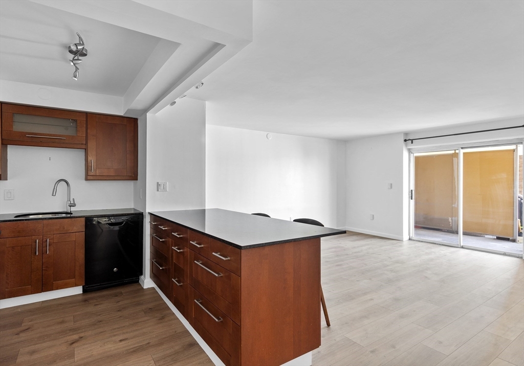 Available May 1! Prime Quincy Center location just minutes to the Red Line, restaurants, and shops. Renovated 1 bed, 1 bath on the 6th floor of a professionally managed elevator building with parking included. Features include new flooring throughout, a modern bath with a newly tiled tub and vanity with storage. The kitchen features granite countertops, ample cabinetry, an eat-in peninsula, updated stainless steel appliances, and a dishwasher. The spacious living/dining layout accommodates a dining table and a living room area and the bedroom offers sizeable closets. Private balcony is off the living room—perfect for morning coffee or evening relaxation! Additional features include built-in A/Cs, one assigned parking space, common coin-op laundry in the building, and a private storage cage. Rent includes heat and hot water; tenant pays electricity, cable, and WiFi. $300 move-in deposit required. First, last, and security deposit required at lease signing. No pets, no smoking allowed.